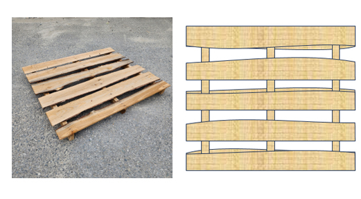 중량물 적재 회수율및 재사용율이 낮은 현장 2단 이상 적재를 하지만 적재물이 단단하고 평평하여 하판이 없음 회수및 수리후 재사용율 20%내외 |