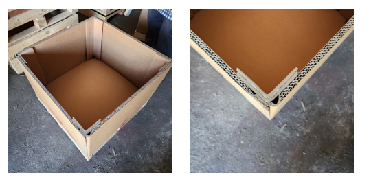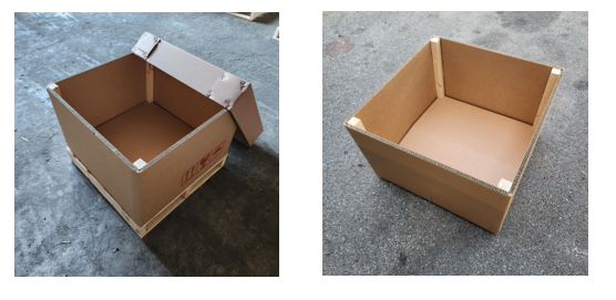 상자 안쪽모서리 종이패드 보강 수출을 위해 열처리과정 진행 상품의 포장을 위해 상자로 제작 |